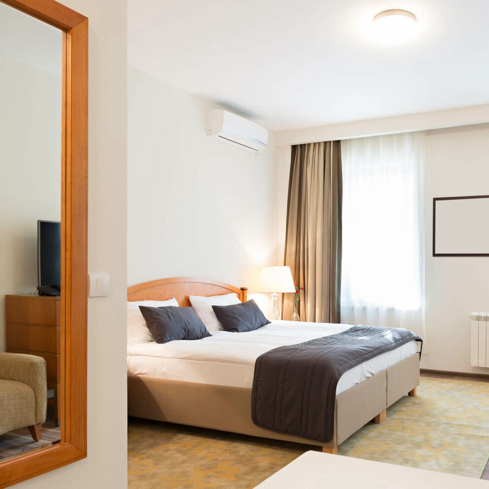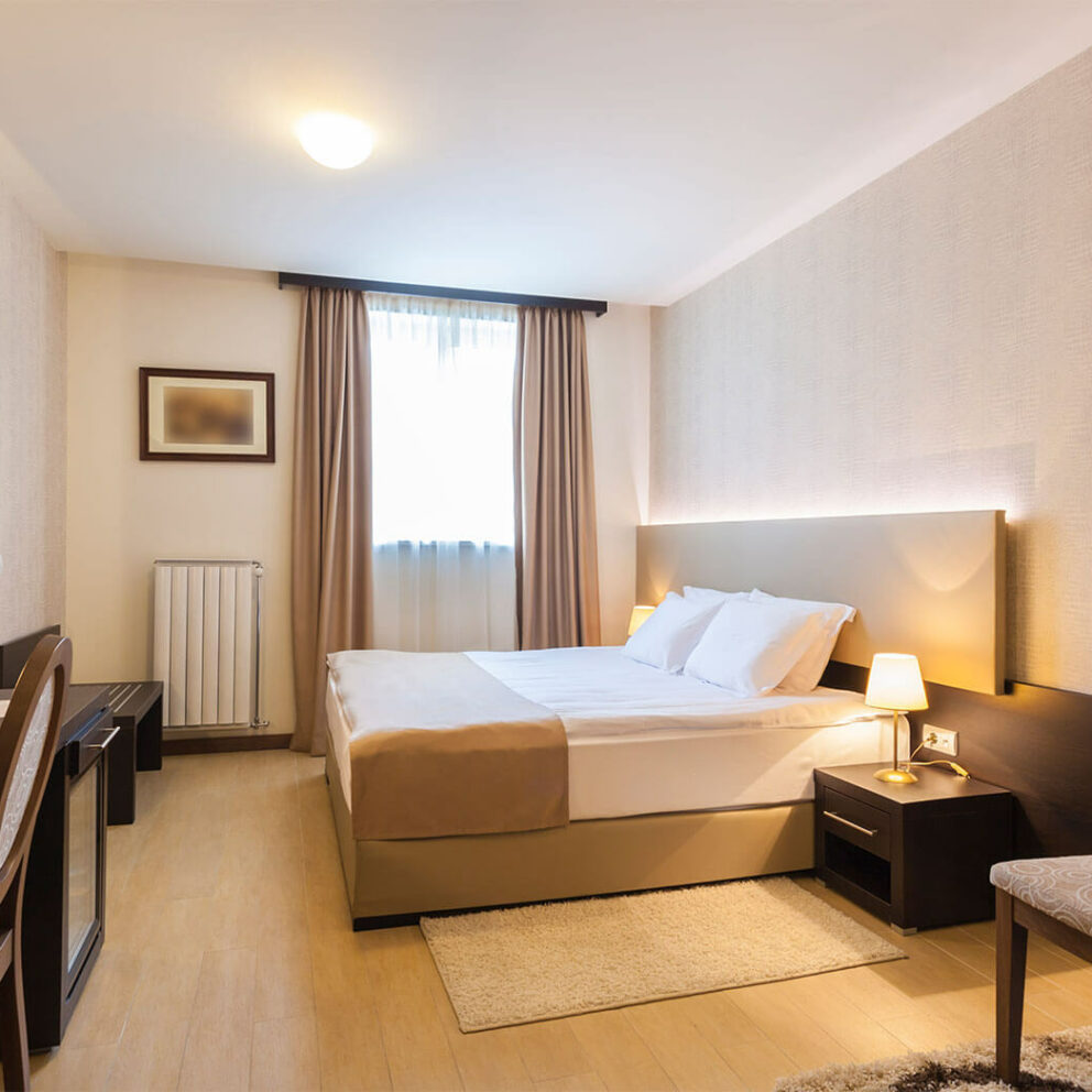 Our hotels have wide range of rooms for you to offer. Standard rooms, deluxe rooms or two-bedroom apartment – at our hotels you will for sure find what suits you best. All apartments have modern design, all needed amenities and perfect view from windows.